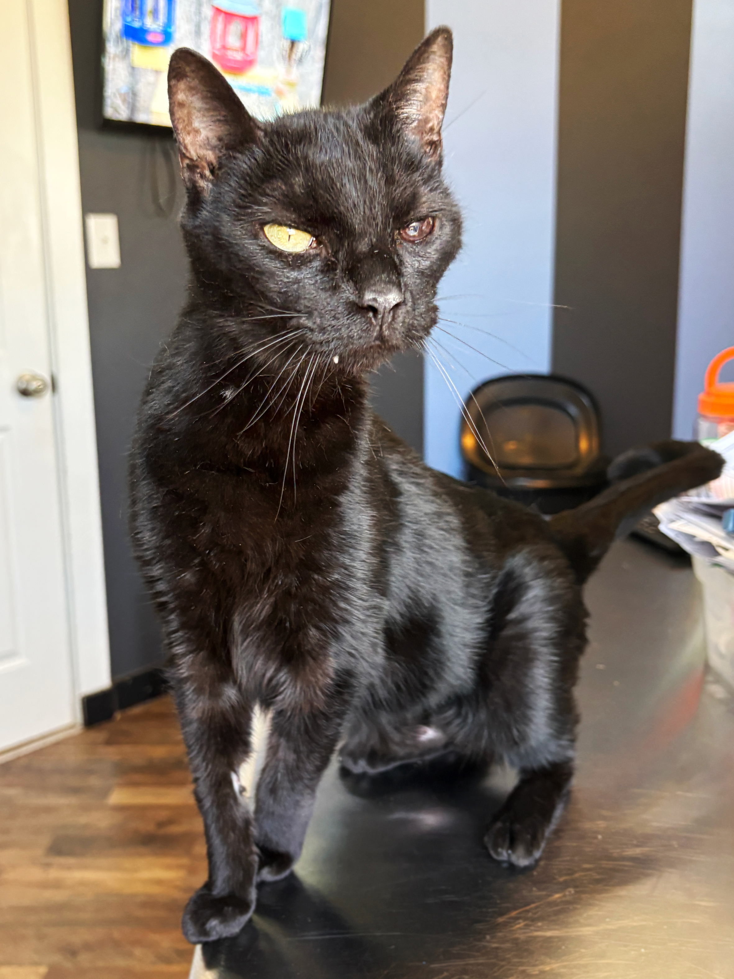 Orca may look like a killer whale, but he is a kind & adorable boi! The only killing he is likely to do is with purrs and invitations for pets. Well, except for the occasional mouse, but that is to be expected. He has yet to decide on a career path but is considering how much fun it might be to work in an aquarium. And to be fair, with a name like Orca, it might be a purrfect fit!